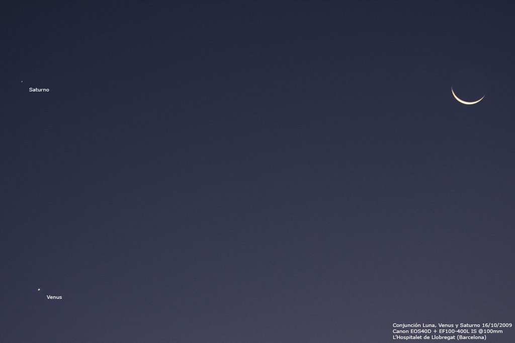 Conjunción Luna, Venus y Saturno - Fecha 16/10/2009 - 40D+EF100-400L@400m - 1024x768