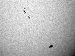Fecha 12/03/2005 Telescopio: Celestron 6" C150N f/5 Cámara: QuickCam Pro4000 - Sensor CCD Exp: 1/50 Método: Foco primario Diafragma: 40mm Distancia Focal: 750 mm Filtros: Lámina solar de Baader, Astronomik IR Block Guiado: Automático con montura HEQ5 Software: capturado con K3CCD Tools Imágen: Selección y suma de 200 frames Lugar de observación: L'Hospitalet de Llobregat (Barcelona) Tratamiento digital: Registax v3, Adobe Photoshop CS