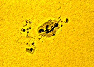 16:20h Telescopio: Meade LX200 S/C 8" (sobre cuña ecuatorial) Cámara: ToucamPro II (CCD) Exp: 1/100 Método: Foco primario Diafragma: 200mm Distancia Focal: 2000 mm Filtros: ThousandOaks Type +3, Baader Continuum+IR Block Guiado: Automático Software: Capturado con K3CCD Tools Imágen: Promedio y suma de 500 frames Lugar de observación: L'Hospitalet de Llobregat (Barcelona) Tratamiento digital: Registax v3, Adobe Photoshop CS