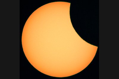 parcial. .:03/05/2005:. Imagen: 12/84 Hora: 10:05h Temperatura: 15,8ºC __________________________________ Cámara: Canon EOS300D Exposición: 1/250 segs ISO: 400 Telescopio: Mak102 Focal: 1300mm Filtros: Thousand Oaks +2 Lugar de observación: Olesa de Montserrat.
