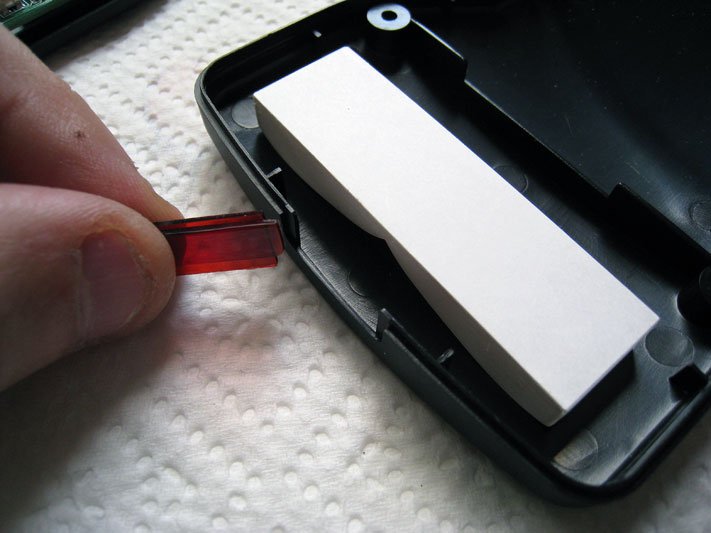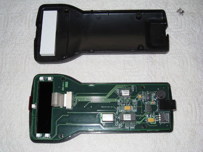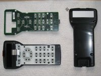 Lo colocamos con la parte posterior hacia arriba y desatornillamos los cuatro tornillos de estrella, una vez retirados procedemos a retirar con cuidado la cubierta trasera, nada más retirarla apartaremos el pequeño cristal rojo del frontal del mando para evitar deteriorarlo o perderlo (fig.3). Una vez retiradas estas piezas nos encontraremos con el mando listo para trabajar (fig.4).